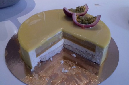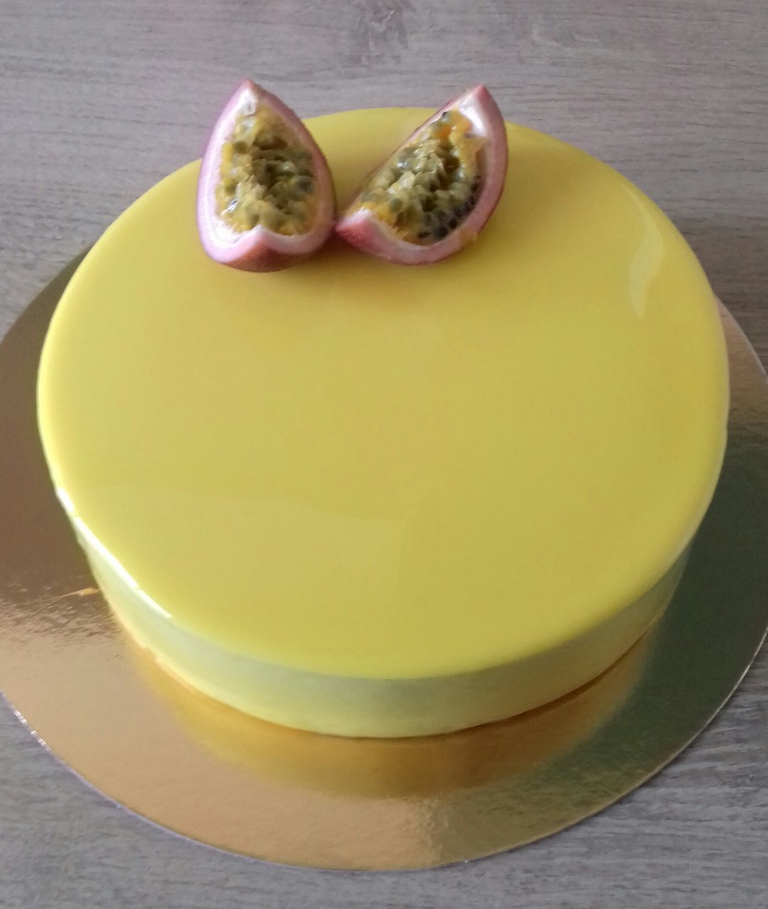Laissez refroidir un peu puis coulez votre gelée mangue passion dans votre moule sur le crèmeux passion.