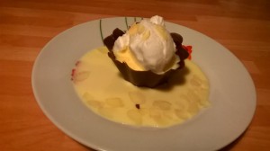 Ile flottante sur coque au chocolat