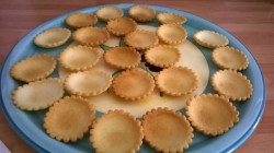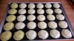 Tout d'abord préparez les fonds des mini-tartelettes. Retournez votre empreinte mini-tartelettes sur la grille. Prenez votre pâte sablée étalez-la, piquez-la et à l'aide du découpoir cannelé 6cm, faites des ronds que vous disposerez sur l'envers de votre empreinte. Mettre au réfrigérateur 10min. Avant d'enfourner pour 8 min mettre la silpat sur les mini-tartelettes.