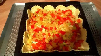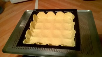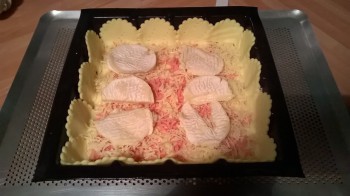 Tout d'abord placé votre moule sur la grille perforée. Etalez votre pâte feuilletée. Posez le moule dessus afin d'y tracer un carré (plus simple pour couper le carré à la bonne taille). Ensuite avec votre rond cannelé 6cm faites des 1/2 ronds que vous placerez tout autour du carré.